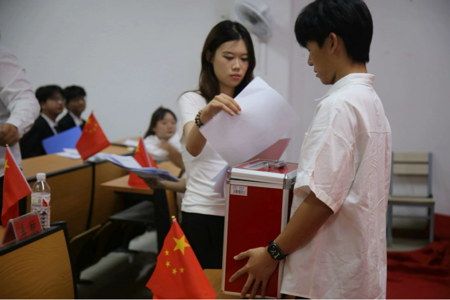 随后进入竞选环节,由我院团委副书记刘沂龙、学生会执行主席毛少浦、青年志愿者协会会长王玉婷、作为学生代表提出选举办法报告及各项考核草案。
