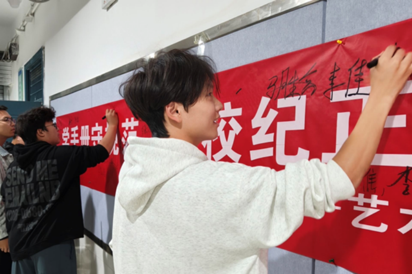 活动以 “学手册守规范 校纪于心” 签名仪式收尾,强化新生规则意识。