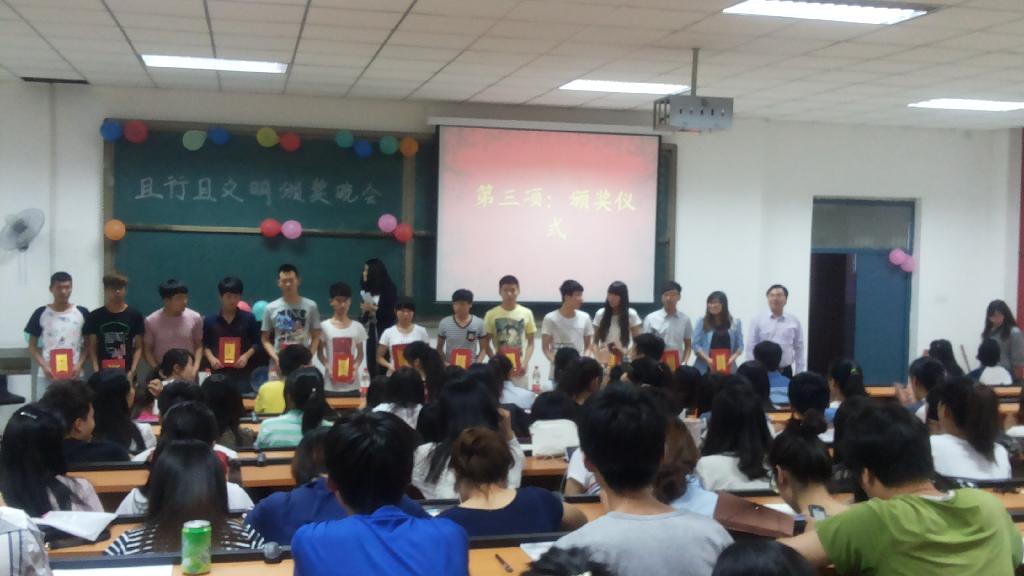 李阳对文明月系列活动所取得的成绩给予了充分肯定,表扬了活动中表现突出的个人和集体,并鼓励全院同学再接再厉,继续保持文明月活动中的良好风气,努力提高自身素养,为我校创建全国文明单位做出贡献。学生代表王倩倩说:“文明礼仪像一盏灯,照亮了你我前行的道路;文明礼仪像一首歌,交织着你我共同的心声;文明礼仪是一种习惯,它体现着人们的生活态度;文明礼仪是一种精神,它展示着人们的风貌。文明月活动虽然结束了,但文明礼貌的精神却要在我们心中生根发芽,希望文明之花在班里竞相开放,文明之风常驻校园。”大会还对1644131等2个“文明教室”、1#505等12个“文明宿舍”以及宋庆晓等15名“文明学生”和“宿舍管理先进个人”进行了表彰。