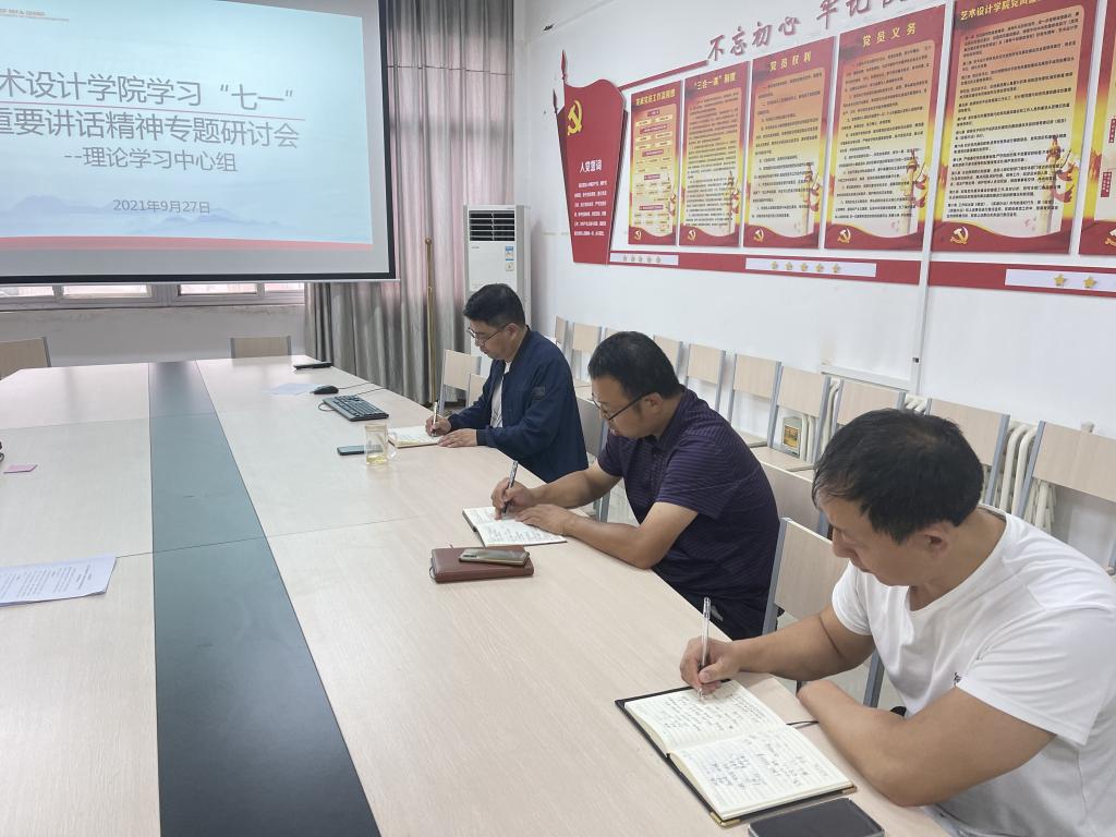9月27日,艺术设计学院党委学习贯彻习近平总书记“七一”重要讲话精神专题研讨会在在一号楼613召开,学习会由院党委书记马步伟主持,院领导郭汝、杨东旭、汤喜辉、郭亚举出席。
