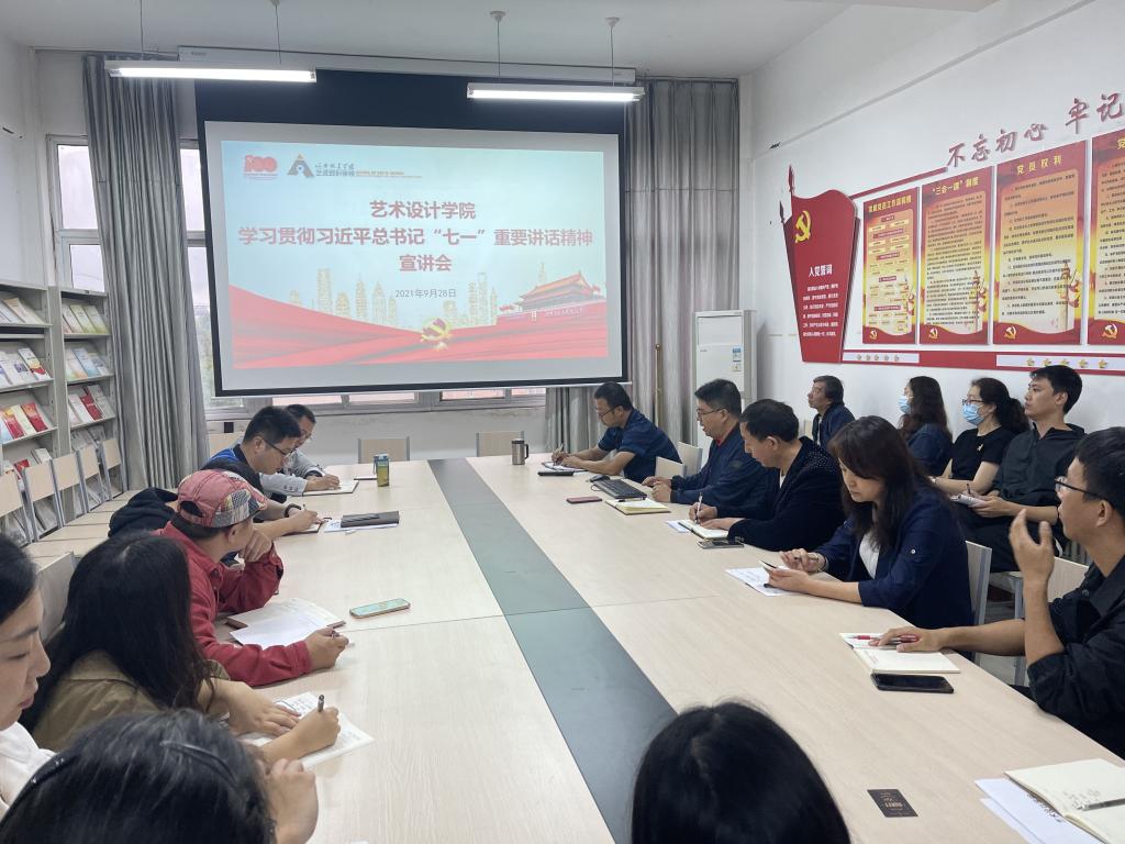 2021年09月28日下午,艺术设计学院在文管校区613会议室召开学习“七一”重要讲话精神宣讲会,对学院学习“七一”重要讲话精神教育工作进行全面部署,会议由党委书记马步伟主持,全体教职工参加会议。会上,马步伟带领大家重温了习近平总书记在庆祝中国共产党成立100周年大会上发表重要讲话,并对下一步的工作进行了安排部署。