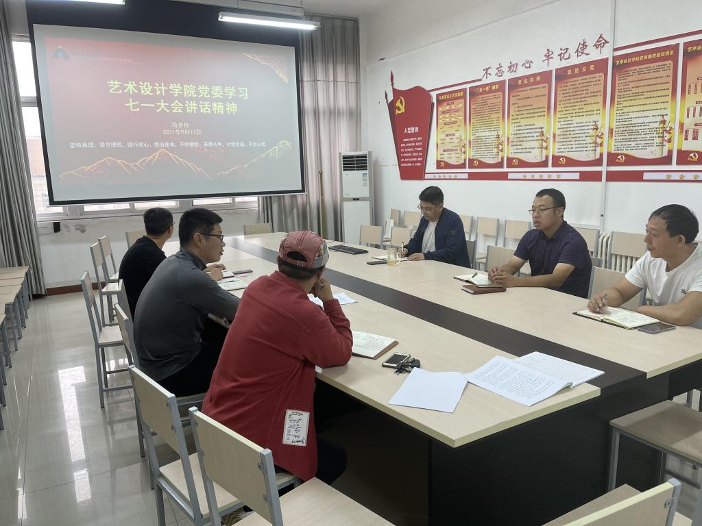 9月13日下午,艺术设计学院党委在一号楼613召开集体学习会,认真学习习近平总书记在庆祝中国共产党成立100周年大会上发表的重要讲话。学习会由院党委书记马步伟主持,院领导郭汝、杨东旭、汤喜辉、郭亚举出席。
