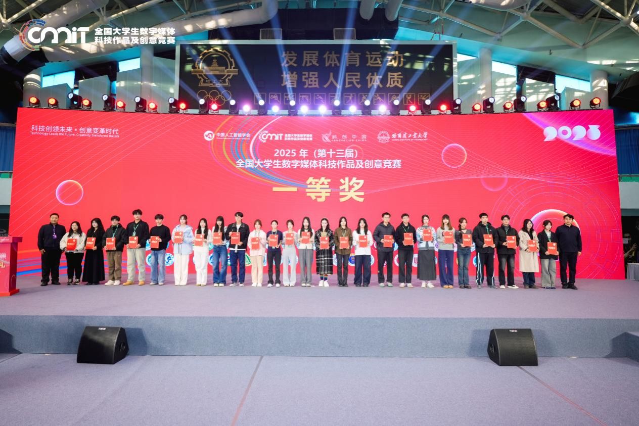 2025年10月24至26日,第十三届全国大学生数字媒体科技作品及创意竞赛全国现场总决赛在哈尔滨工业大学圆满落幕。本届大赛吸引了来自清华大学、武汉大学等全国1187所高校的50余万学子参与,征集作品17万件,竞争激烈,规模空前。在我校艺术设计学院党伟、吴婉莹等老师的悉心指导下,参赛团队凭借出色表现,最终荣获国家级奖项8项,省级奖项19项;其中全国一等奖1项、三等奖7项,成绩斐然。