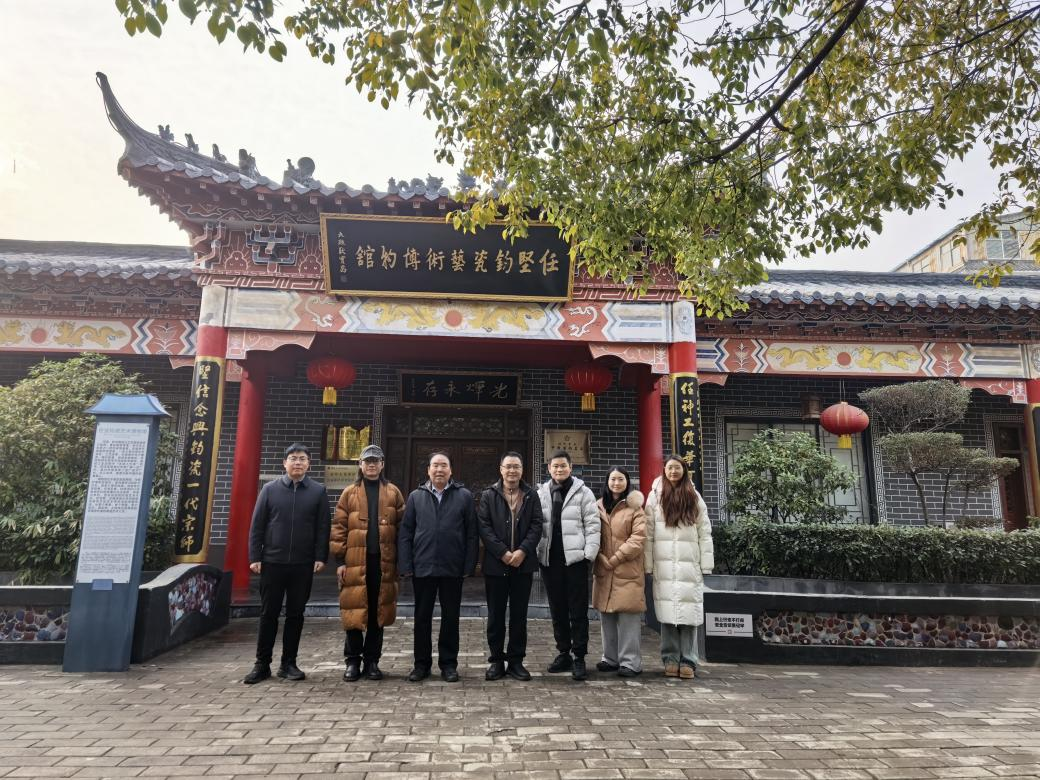 考察首站来到蒲城古陶创作基地。团队深入探究古陶制作的原料特性与成型工艺,从材料化学与物理成型原理的角度,对传统制陶技艺进行了系统性梳理与现场研讨。随后,团队走进廷怀窑,近距离鉴赏当代汝瓷精品。汝瓷温润典雅的造型与釉色中蕴含的工艺创新,展现出传统技艺在当代设计中的活化与演进,为考察团带来深刻启发。之后,团队参访了中国大唐钧瓷文化园。这里不仅珍藏有多件河南卫视《中国节日·春秋奇妙游》节目中的钧瓷珍品,令观者实地感受到超越荧幕的视觉震撼与艺术张力,还陈列着工艺美术大师韩美林的多件陶瓷作品,其创作中所体现的融合传统与当代的宗师风范,令人叹服。团队在此深入了解了这家百年老字号在匠心传承与文化创新方面的实践。最后,考察团抵达陶行知文创工厂,深入生产一线,详细调研现代陶瓷模具的制造流程与生产工艺。双方还围绕产教融合、人才培养、项目合作等议题展开务实交流,初步明确了校企合作的方向与内容,为后续深入推进学术互动与协同创新奠定了良好基础。