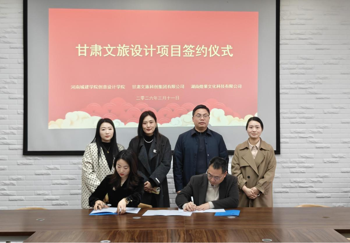 此次签约是优势互补、共谋发展的战略抉择,为后续学生实习安全保障奠定了坚实基础。未来,河南城建学院创意设计学院将持续与湖南煌果文化科技有限公司及甘肃文旅科创集团有限公司保持紧密联动,推动甘肃文旅设计项目,共同为培养高素质设计人才贡献力量。